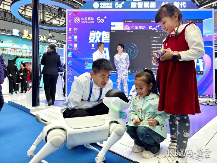 数字生活应用馆内,小朋友正在与机器狗互动。长城网·冀云客户端记者 周亚彬 王棋 摄