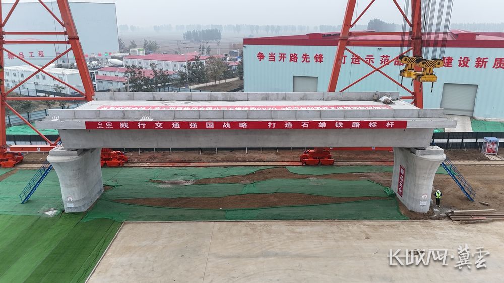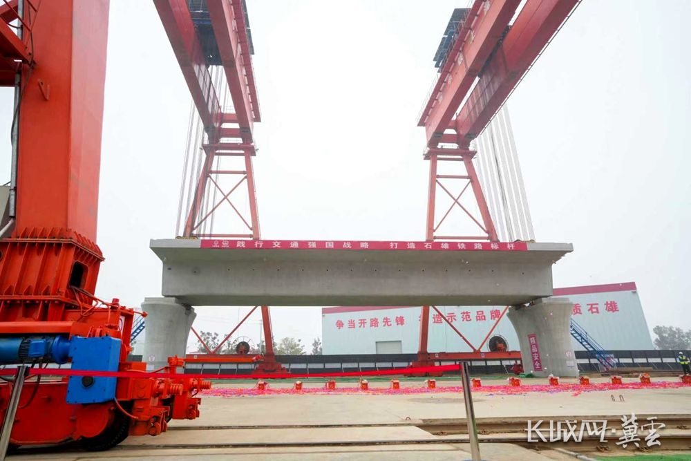 长城网·冀云客户端讯(记者 周亚彬 通讯员 陆爽)10月31日上午,在石雄铁路定州区段建设现场,在大型机械的精准操控下,首榀重达数百吨的预制箱梁稳稳落于桥墩上,标志着石雄铁路建设进入桥梁架设阶段,为后续无砟轨道铺设打下了坚实基础。