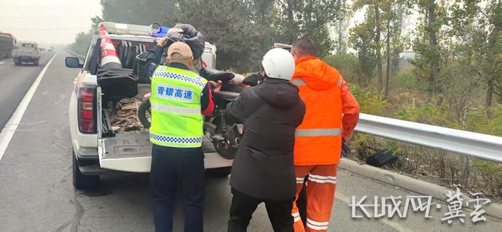 长城网·冀云客户端讯(通讯员 孟晓燕)11月6日上午9点40分,河北高速集团青银分公司石家庄保通保畅应急大队队员郝志勇、刘佳佳巡逻至青银高速K609公里处时发现一名行人正骑行电动车行驶在应急车道上。