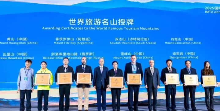 长城网·冀云客户端11月11日讯(记者 庞晓玮 任英飒)今天,2025国际山地旅游暨户外运动大会公布通过认定的第二批“世界旅游名山”名单,河北嶂石岩景区成功入选。本次被授予“世界旅游名山”称号的一共有8座名山,包括中国-黄山、阿根廷-菲茨罗伊山、沙特阿拉伯-苏达山、中国-丹霞山、中国-瓦屋山、俄罗斯-别洛库里哈山脉、中国-雪峰山、中国-嶂石岩。目前联盟已在全球认定22座“世界旅游名山”。