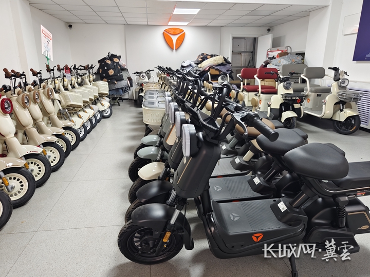 雅迪电动车西三庄店摆放着新到货的新国标电动车。长城网·冀云客户端记者 周亚彬 摄