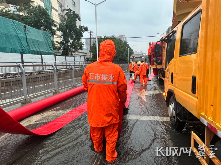 降雨时段正值早高峰,石家庄市城管局迅速启动应急机制,全市城管系统全员在岗在位,排水、环卫、站前管委会等部门,争分夺秒清理道路积水和恢复交通秩序,全力投入防汛抢险工作。