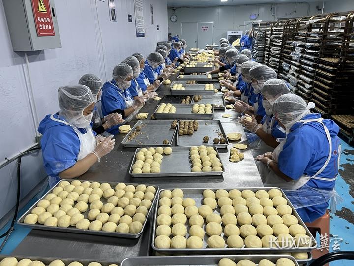 记者走进“印奶奶月饼”制作工厂探究黄庄月饼的“美味秘诀”。只见和面间、开酥台、馅料间、成型区、烘焙线“一气呵成”,工人将油酥反复擀压卷叠,饼坯入炉后金黄微鼓,出炉冷却再经称重、封口,整套流程紧凑有序。