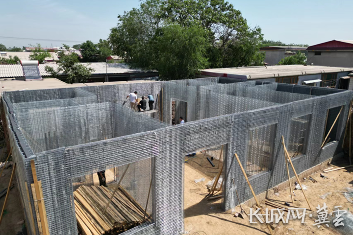使用广骏钢网免拆模技术正在建造的装配式农房。资料图