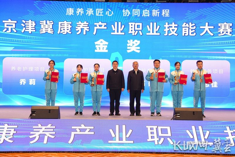 2025年京津冀康养产业职业技能大赛闭幕式现场为金奖获得者颁奖。河北省人社厅供图