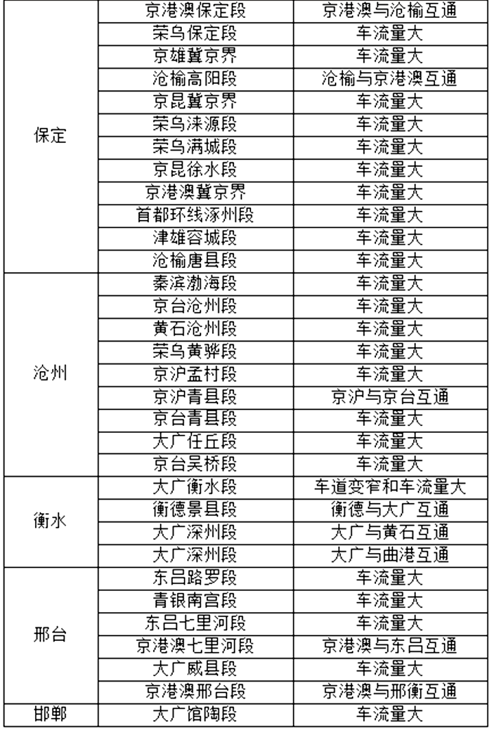 需特别注意的是,春运前期货运需求旺盛,沧州、唐山、秦皇岛区域的高速公路,以及衡水、承德、廊坊等地的部分国省道客货混行流量较大,建议私家车驾驶人尽量绕行这些货车集中通行路段。