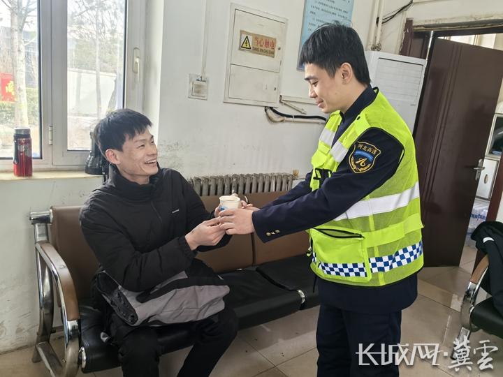 同样在这返程高峰日,疏导人员在广场巡查时发现一名身着单薄衣物、拖着沉重行李的男子在寒风中来回踱步,神情焦急。经询问得知,他正在等待尚未抵达的接应车辆。“外面冷,先到屋里暖和一下。”工作人员立即将男子安全引领至收费站爱心驿站休息,并端上热水为其驱寒。在温暖的室内,工作人员一边告知实时路况,一边安抚其焦躁情绪。贴心的服务,让这名在寒风中等待的旅客真切感受到旅途中的温暖。