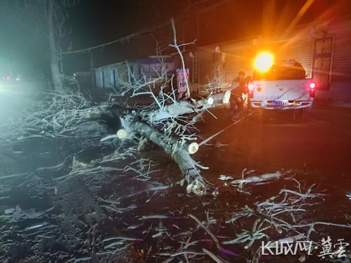 连夜清理倒伏的路树。