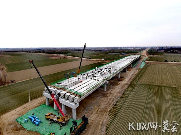 国道G515无极县绕城段改建工程桥梁上部结构施工。