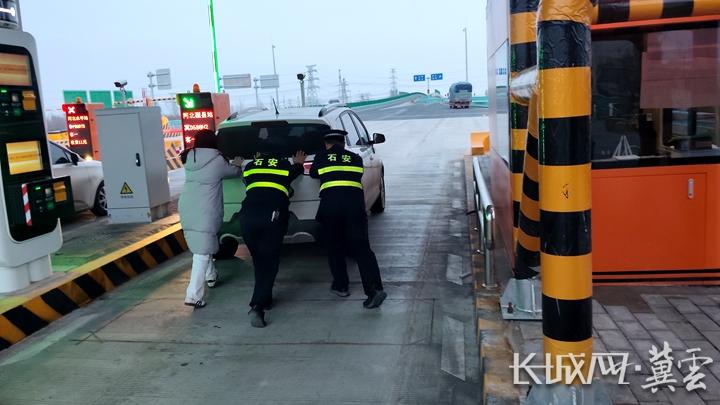 险情发生后,河北高速集团石安分公司肥乡西收费站当班班长立即启动应急预案,一方面指挥疏导员引导后方车辆有序分流,最大限度缓解拥堵;另一方面组织在岗人员合力将故障车辆推至站外安全区域,快速恢复车道正常通行秩序。