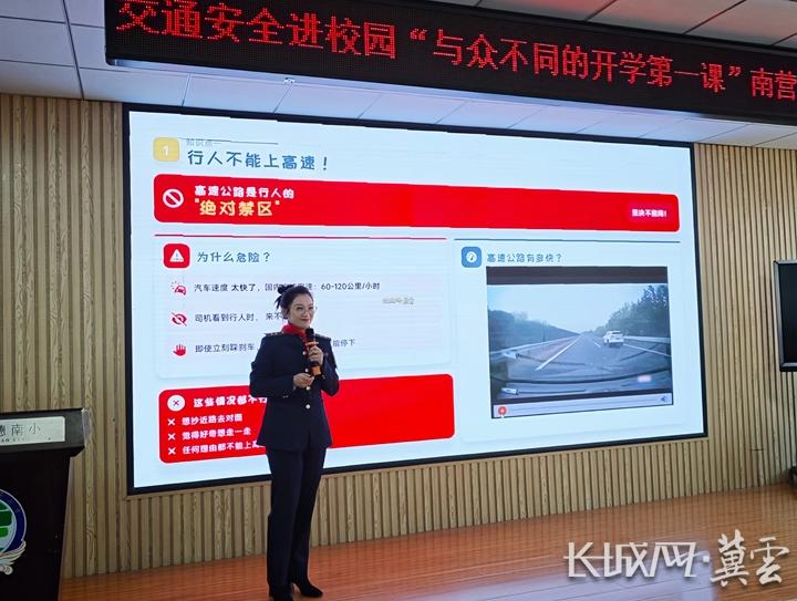 活动现场,承德分公司与承德市交警代表化身安全守护官,通过高速危险案例、警示视频以及通俗生动的知识宣传,重点讲解高速安全9字口诀、道路指示标识识别技巧,结合日常出行规范深度剖析交通陋习的潜在危害,用直观易懂的方式引导孩子们知危险、会避险。课堂氛围轻松热烈,同学们认真听讲、踊跃举手,积极参与问答互动,将交通安全要点牢牢记在心头。