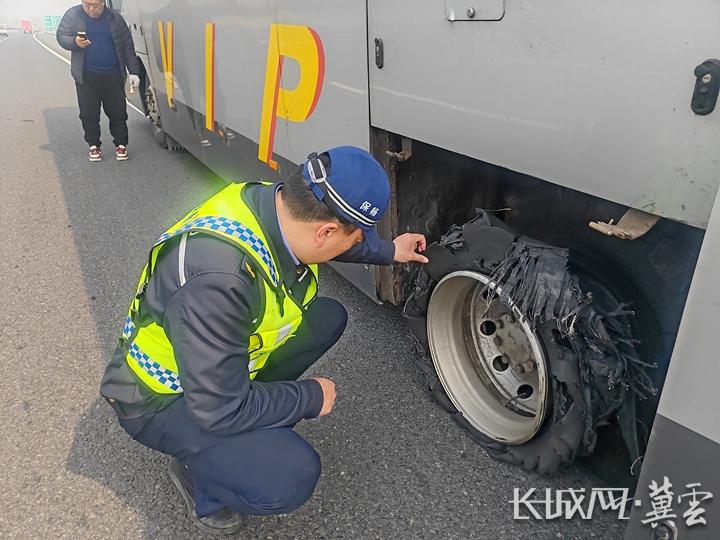 当日,大队在日常巡查中发现,一辆载有50余名学生的大巴车因突发爆胎,被迫停靠在行车道与应急车道之间,占据部分行车道,存在极大安全隐患。大队随即启动应急预案,并联合高速交警迅速开展管控与救援工作。