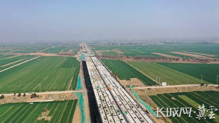 国道G515无极绕城段木刀沟特大桥加紧建设。
