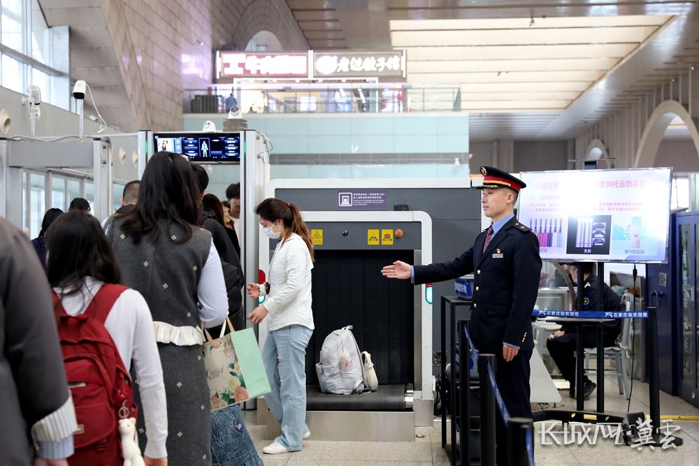 石家庄站内,旅客有序安检进站。通讯员 供图