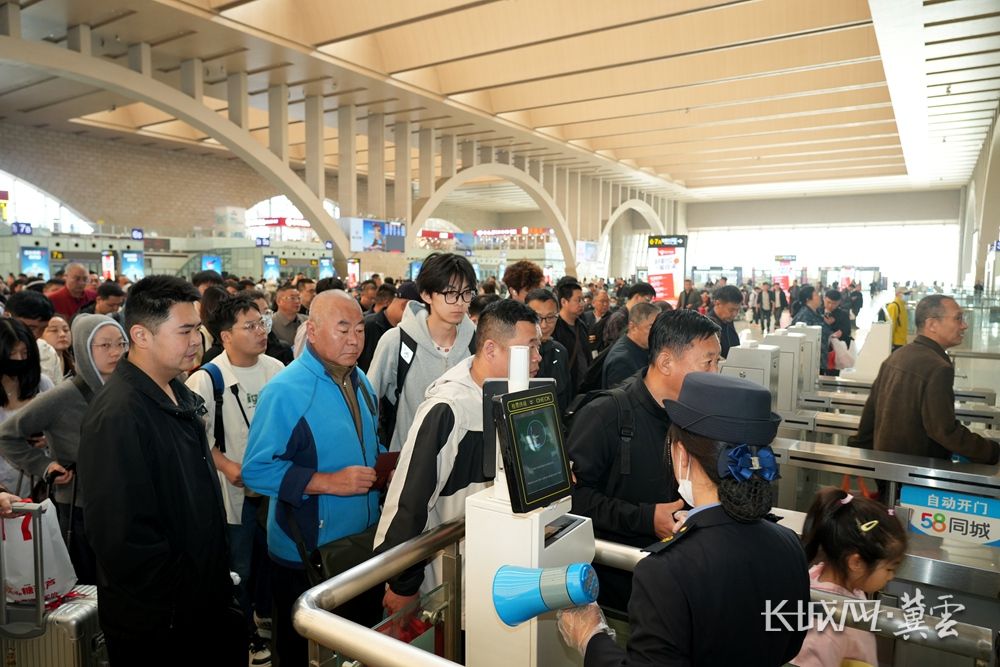 石家庄站内,旅客有序乘车进站。通讯员 供图